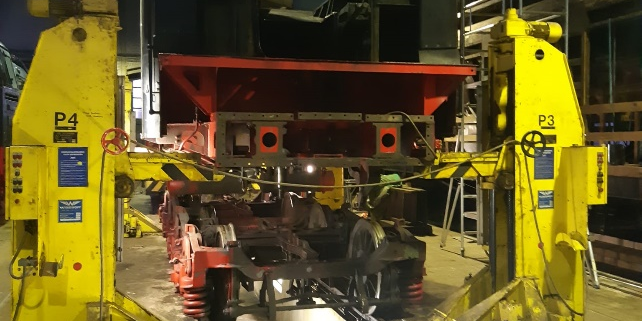 Een volgend hoogte punt ( letterlijk) was het heffen van de tender. Met onze hefbokken hebben we de tender van haar draaistellen gelicht.