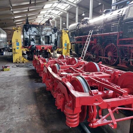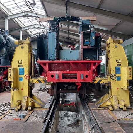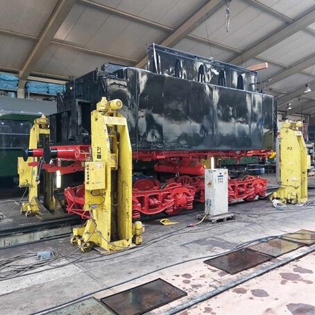 In september was het eindelijk zover, de tender kon weer op zijn eigen wielen worden geplaatst. De draaistellen waar deze wielen in zitten, stonden al een tijdje gereed. Het wachten was op het gereedkomen van het laswerk aan de binnenkant van de tender. Pas hierna zou het laatste schilderwerk aan de onderkant van de tender gebeuren, anders zou het laswerk dit eraf branden. Het laswerk was gereed, maar toen moest onze 01 1075 gerepareerd worden waardoor de hefbokken de hele zomer bezet waren. Vlak voor het event “Terug naar Toen” is deze gereed gekomen, zodat er ruimte was om de tender van de 41er te heffen. Hefbokken plaatsen, tender omhoog, nooddraaistellen eronder uit, eigen draaistellen eronder en weer zakken. Het is passen en meten om de lummelbouten precies in de draaikommen van het draaistel te laten zakken. Toen dit was gelukt kon de tender op de steunpunten van de draaistellen gaan rusten. Er zijn geen afwijkingen geconstateerd in de oplegging en dus is de operatie succesvol afgerond! Nu kon de rolproef plaatsvinden, welke zonder problemen is volbracht. Restpuntjes waren nog het aansluiten van het remwerk tussen tender en draaistellen, en afmonteren van de verschillende olieleidingen. Al met al is de onderstelrevisie van de tender zo goed als klaar. Een kleine samenvatting van de gedane werkzaamheden: