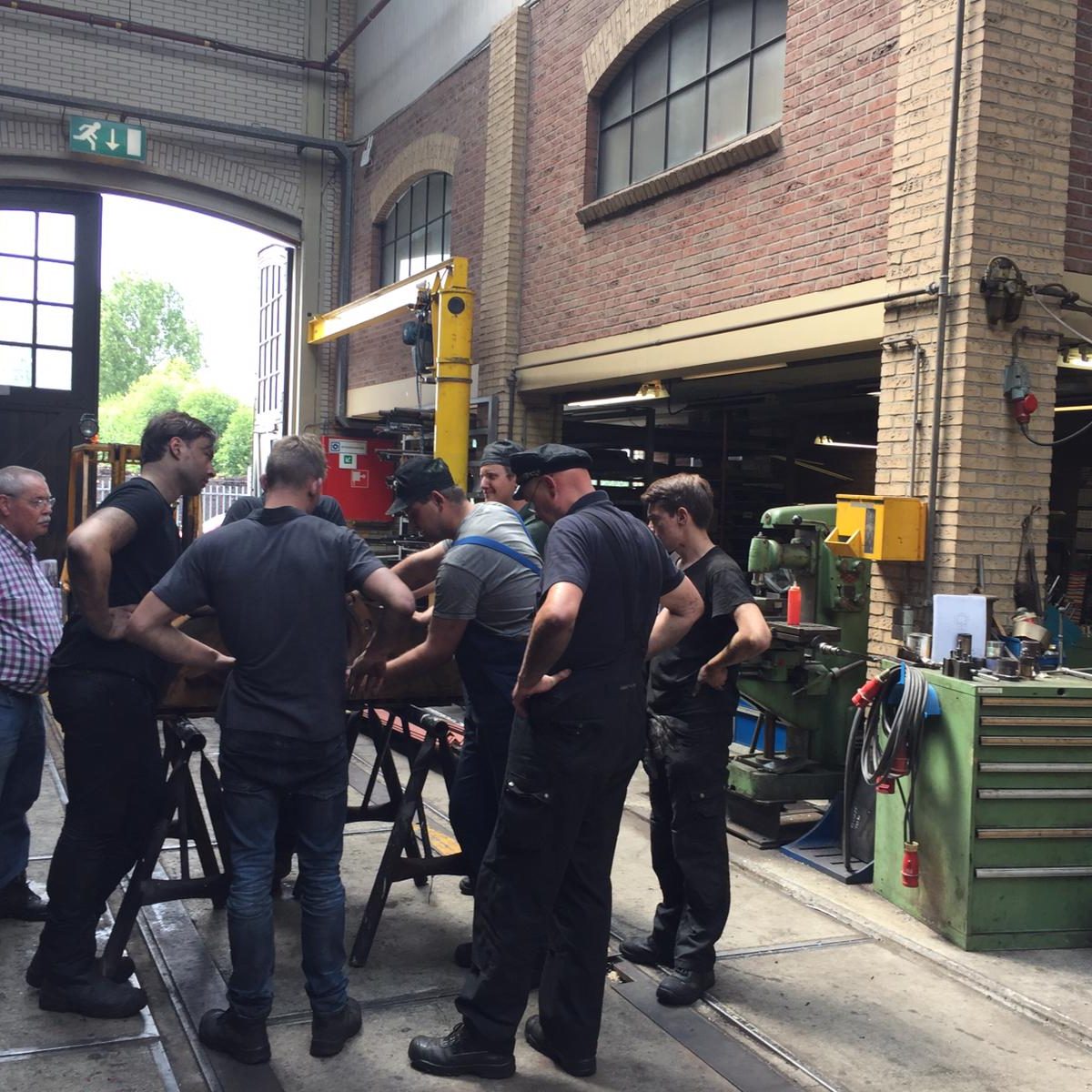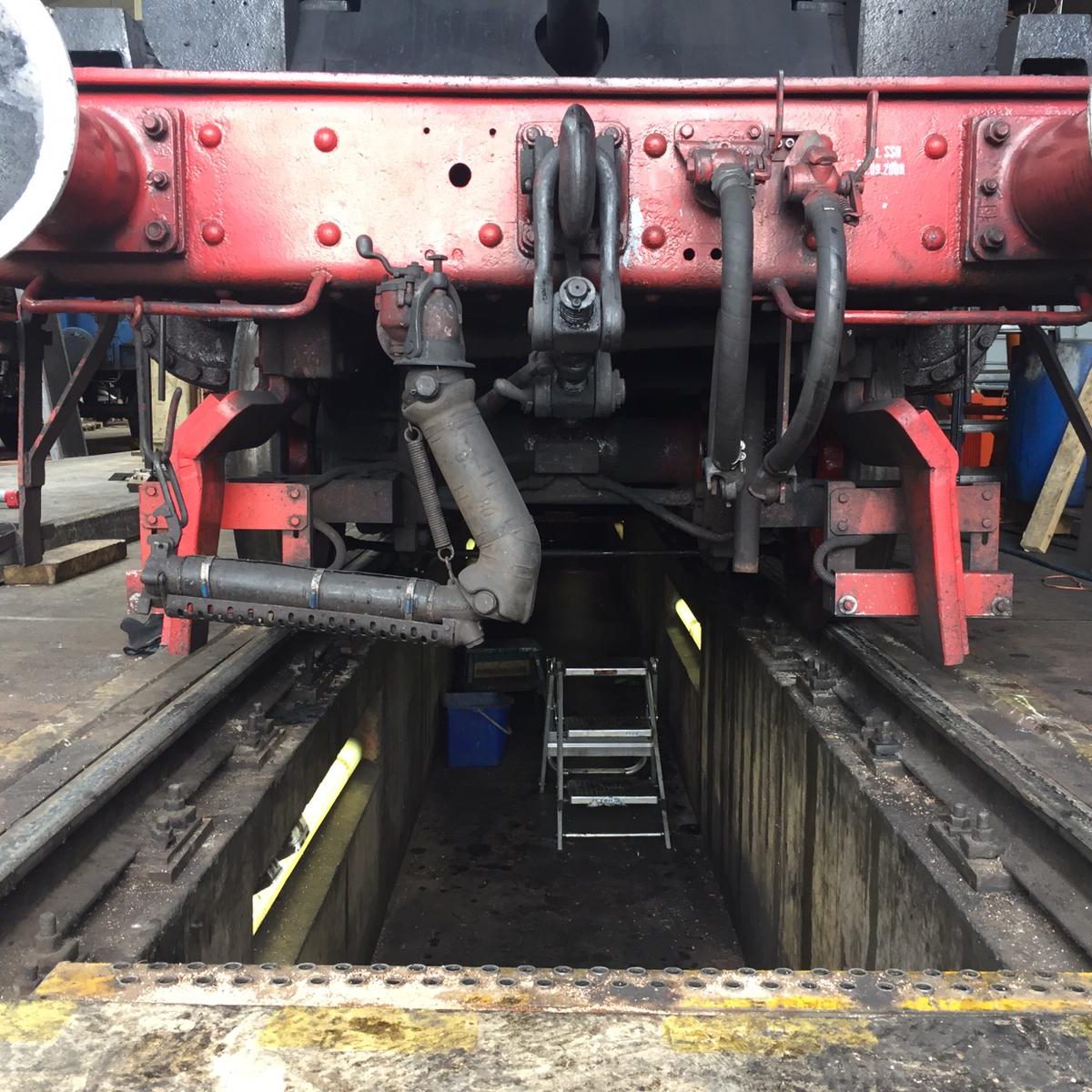 In de afgelopen jaren heeft de SSN veel ervaring opgedaan op dit gebied en is heel veel aandacht besteed aan het restaureren van 2e hands machines en gereedschappen. Hierdoor zijn we thans in staat om ook ingewikkelde revisies volledig in eigen beheer uit te voeren. Met 4 elektrisch aangedreven hefbokken kan zelfs de 01 1075 op een zodanige hoogte worden gebracht dat we de assen er onderuit kunnen rollen.